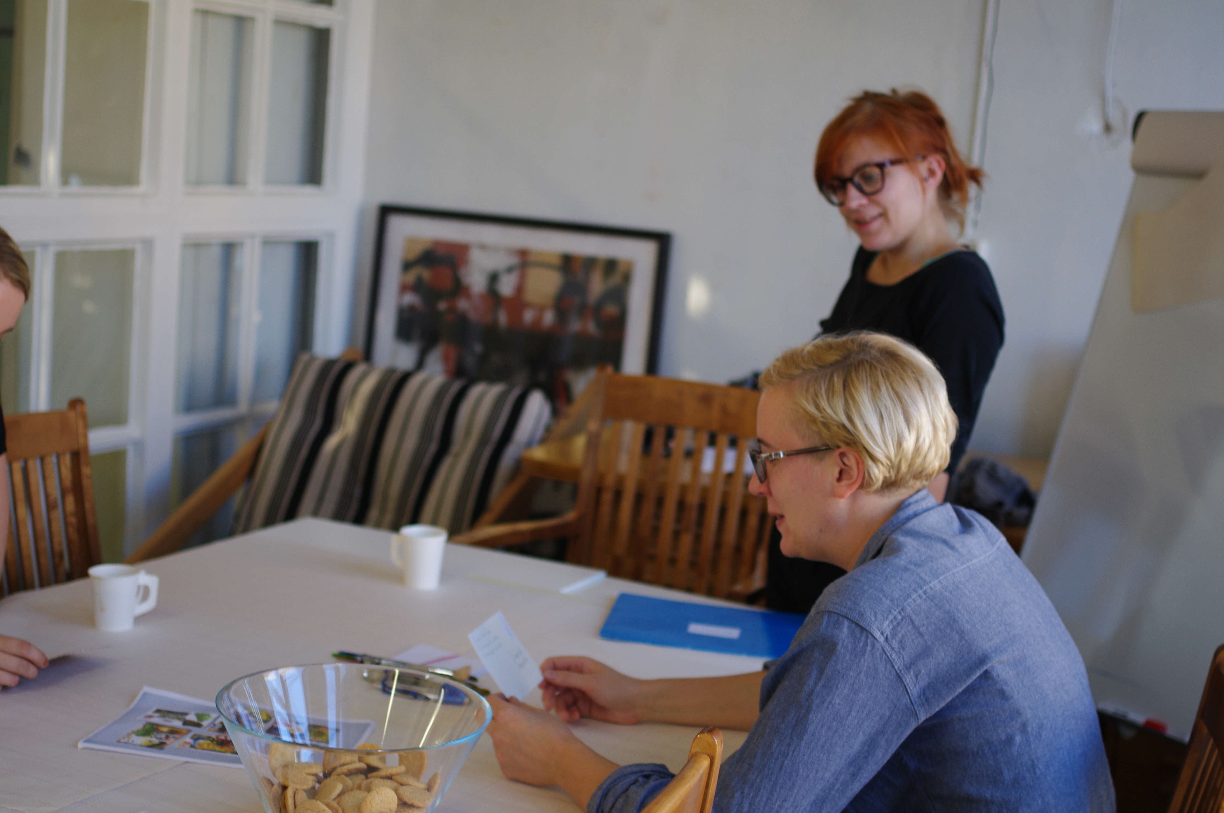 Invisible Neighbours (Näkkymättömät Naapurit) project took place in September – October 2015, in collaboration with Kalasataman Taidetalkoot community art project of Performance art centre Eskus and Annika Niskanen. The idea was to make a connection between the inmates of Helsinki prison Sörkka and the residents of the nearby blocks of flats. For the duration of six weeks, the two groups made and signed postcards for each other at the meetings held both inside and outside the prison. We talked about our living environments, shared recepies, composed haiku, drew with fresh blueberry juice and made collective self-portraits.